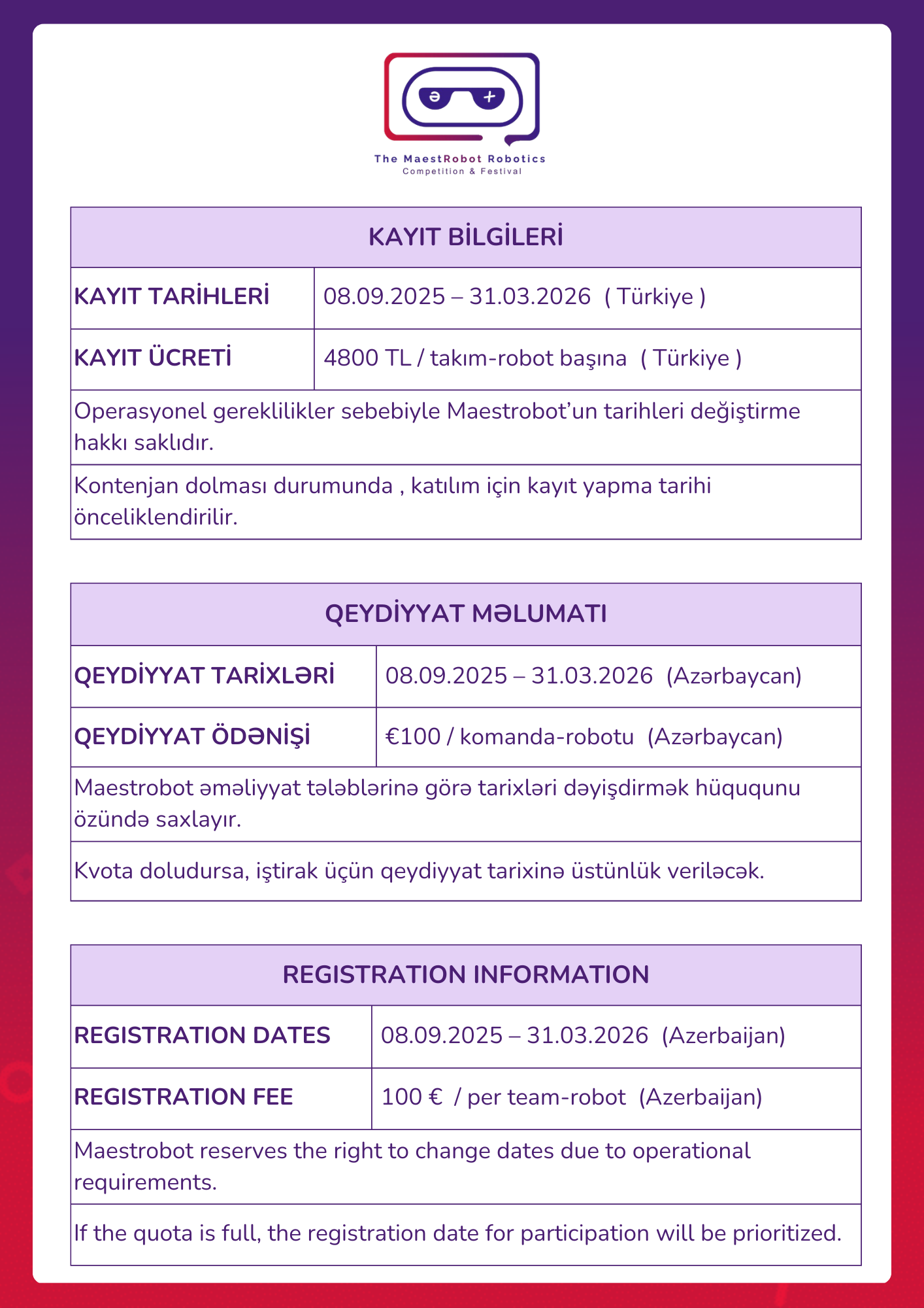 The MaestRobot Robotics Competition & Festival Robotex International ’ın Türkiye ve Türk Cumhuriyetlerindeki tek yasal temsilcisidir.